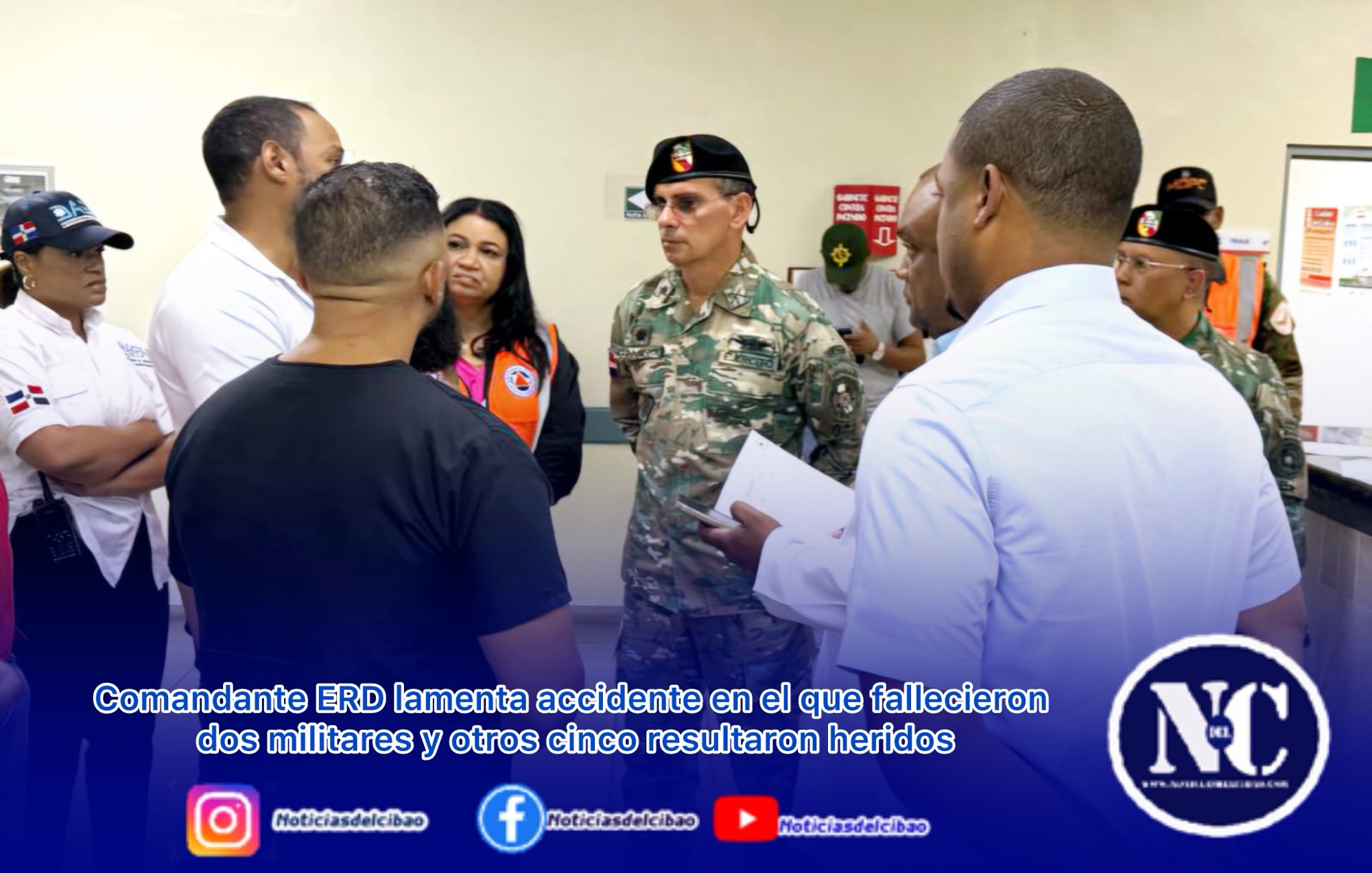 El Comandante General del Ejército de República Dominicana lamentó el trágico accidente de tránsito en el cual fallecieron dos soldados y otros cinco resultaron heridos, mientras transitaban en un camión de transporte de tropas en el tramo carretero Piedra Blanca-Monseñor Nouel.