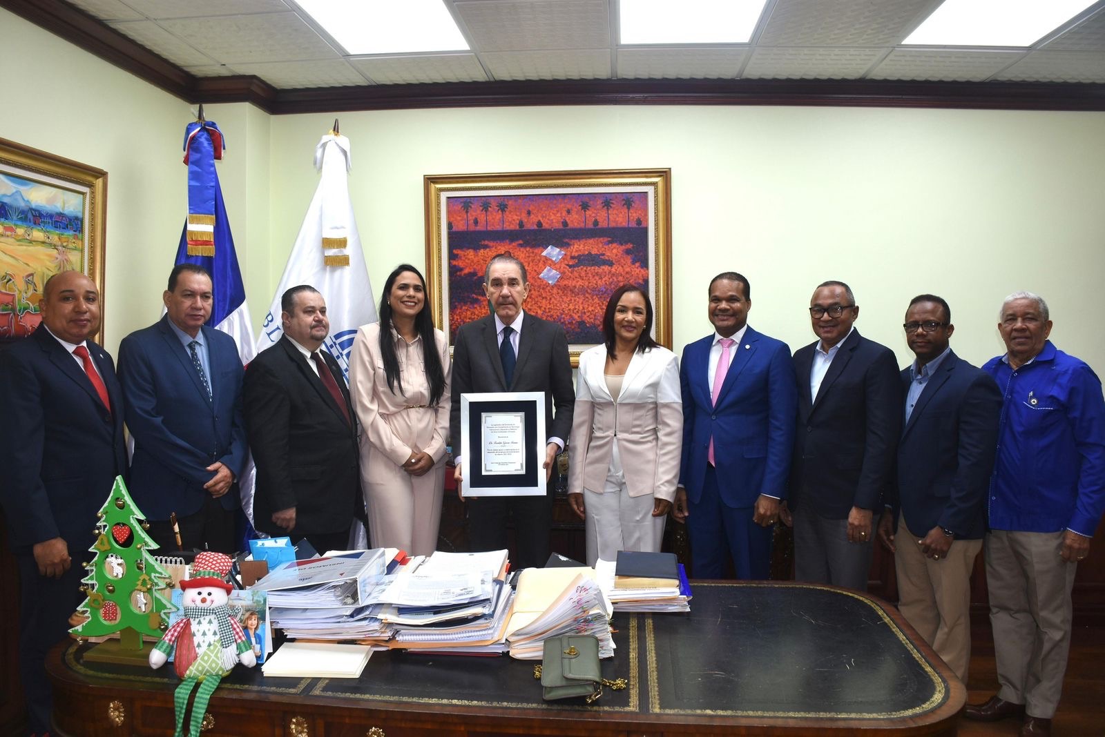 El reconocimiento entregado de manos del coordinador del programa doctoral, Carlos Mayobanex Cabral, condecora al titular del MESCyT por ser un abanderado de la realización de investigaciones a través de programas doctorales en las Instituciones de Educación Superior.