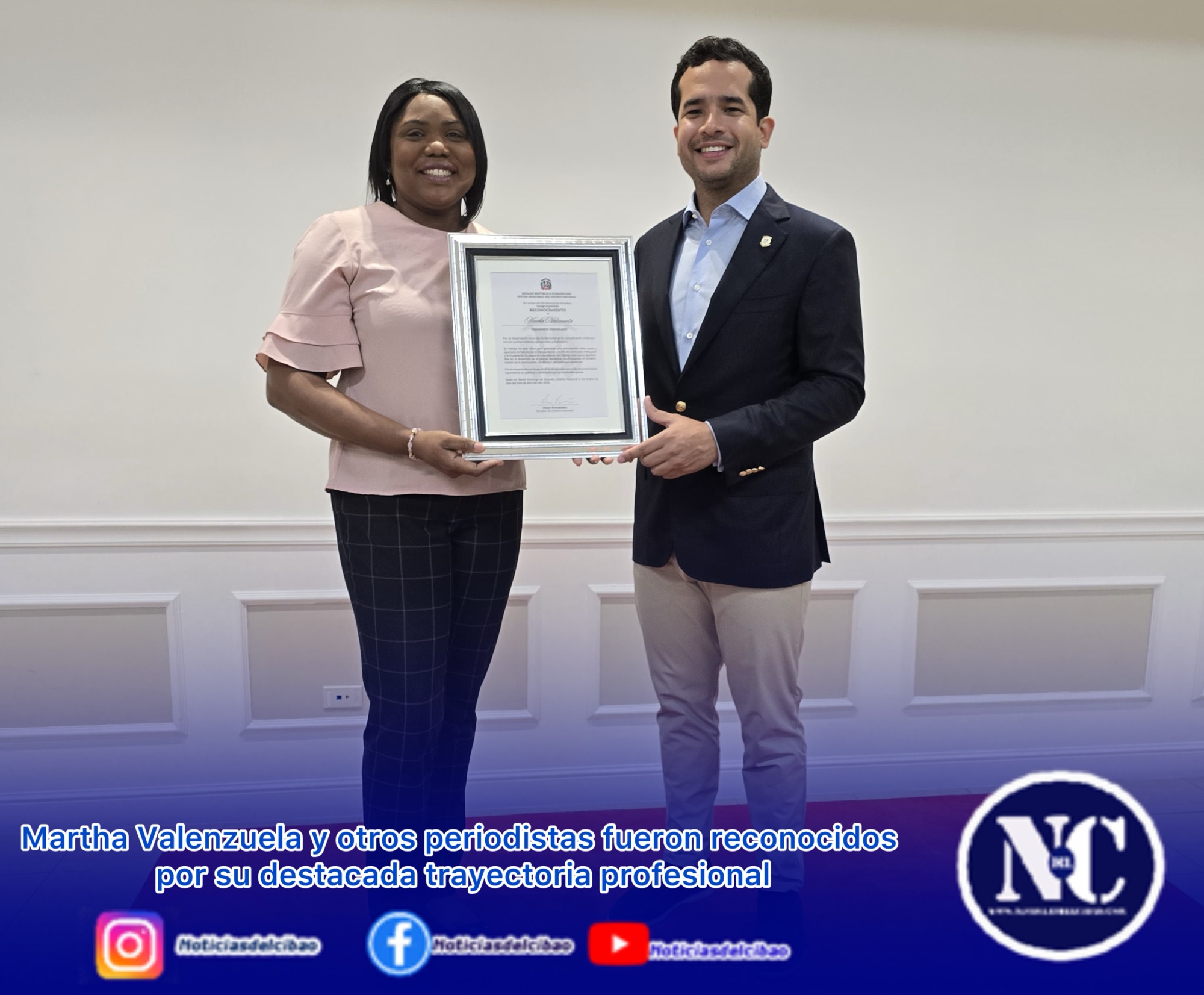 Tras recibir el pergamino de reconocimiento de manos del senador Fernández, la periodista agradeció la distinción y expresó su disposición de seguir ejerciendo la profesión con la seriedad y credibilidad que le han caracterizado.