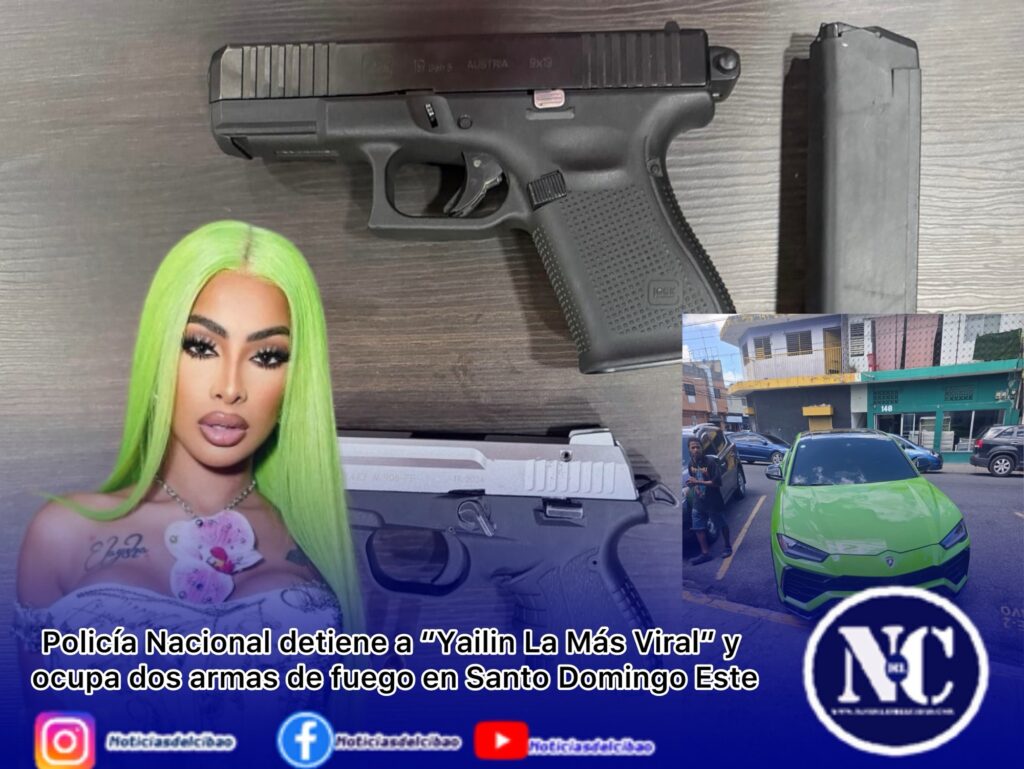 La Policía Nacional informó el apresamiento de la artista urbana Yailin La Más Viral (Jorgina Guillermo Díaz), durante un operativo realizado en el sector Los Mina, Santo Domingo Este, donde le fueron ocupadas dos armas de fuego en el interior de un vehículo de su propiedad.