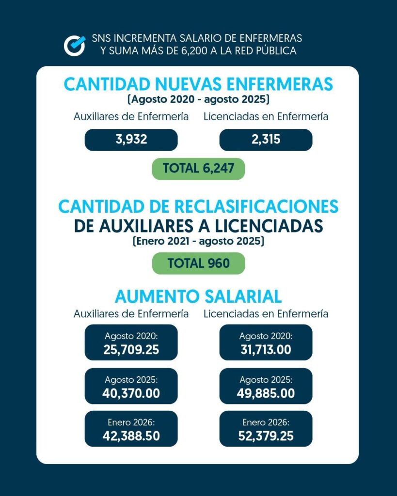 Con estas medidas, el SNS reafirma su compromiso de continuar fortaleciendo la enfermería y dignificando al personal de salud que sostiene la atención a millones de dominicanos en todo el territorio nacional.